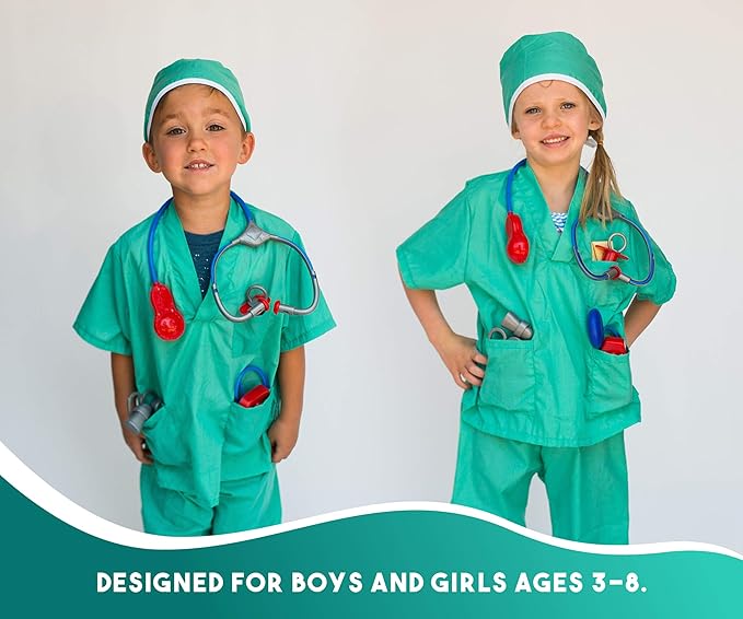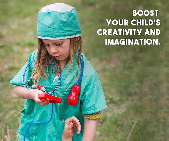 Transformez la salle de jeu en bloc opératoire avec ce kit complet de chirurgien ! Idéal pour stimuler l'imagination, ce costume permet à l'enfant de développer son empathie, sa confiance et ses compétences sociales à travers le jeu de rôle.