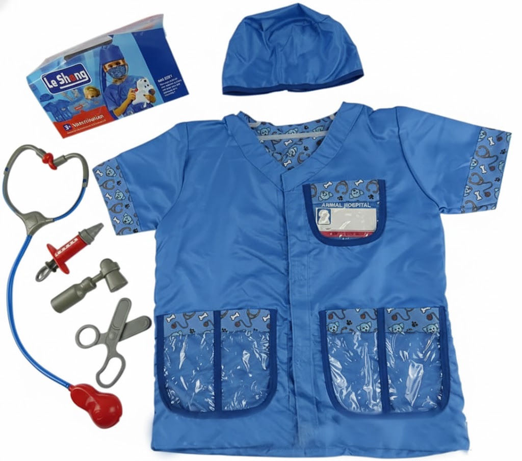 Pour tous les petits passionnés d'animaux, ce costume de vétérinaire est le choix idéal ! Conçu pour offrir une expérience de jeu réaliste, il permet aux enfants de soigner leurs peluches tout en développant leur imagination et leur empathie.