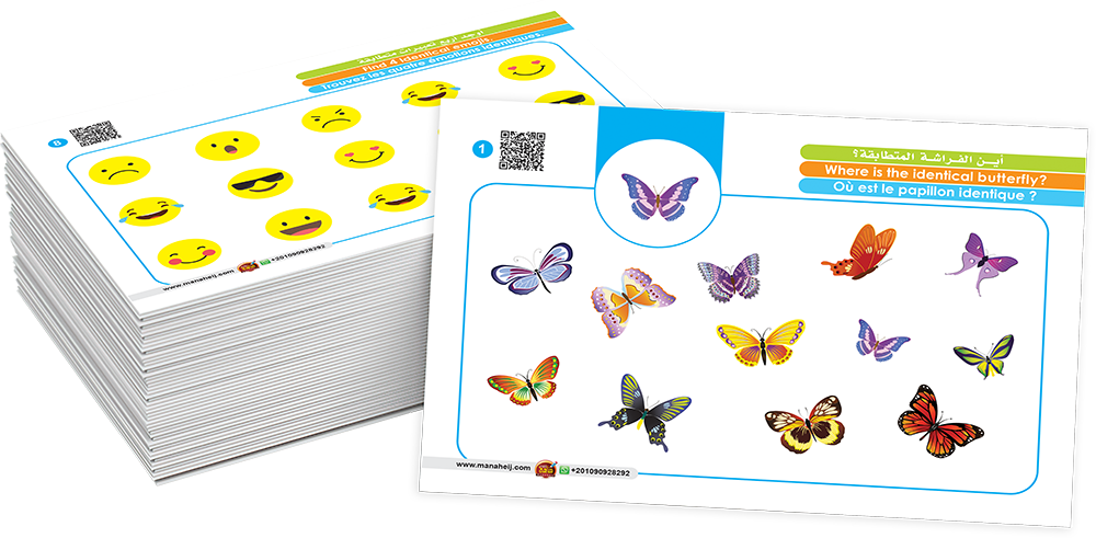 التمييز البصري : هي مجموعة بطاقات تفاعلية لتنمية مهارات الطفل والذكاء البصري عبر أنشطة تفاعلية وتمرينات ممتازة. مصممة لتطوير قدرات الملاحظة والتركيز لدى طفلك بطريقة ممتعة.