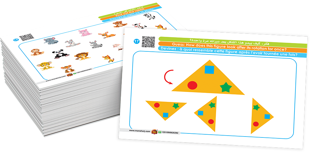 - ✅ محتوى غني: المجموعة بها 20 كارت (وجه وظهر)، بحيث يحتوي كل كارت على بطاقتين، ليكون الإجمالي 40 بطاقة نشاط.